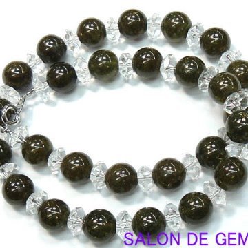 ●高級天然 グリーンガーネット&天然カットクリスタルのデザインネックレス!