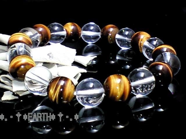 天然石★10ミリタイガーアイ虎目石&高級天然水晶 数珠 | |