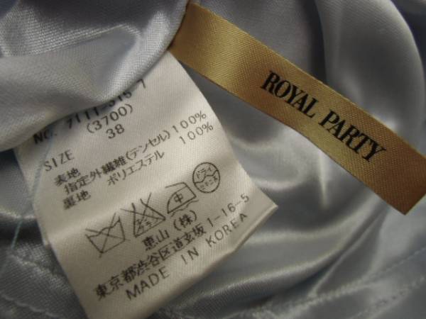 ロイヤルパーティ 青 腰紐付ショートパンツ サイズ38の未使用品です。未使用ですが紙タグはないです。