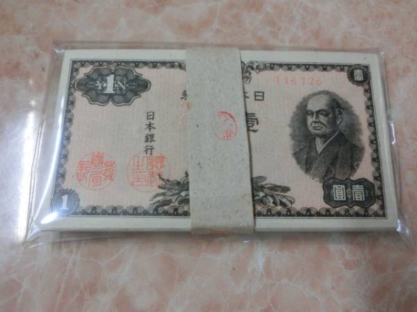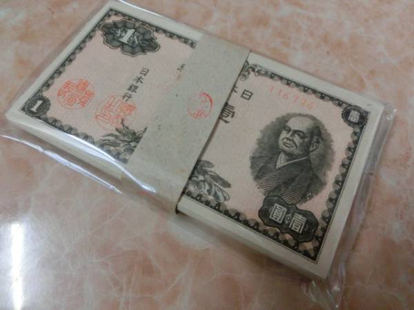 日本銀行券A号1円 二宮1円の未使用を100枚です。
