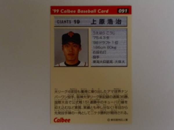 上原選手のルーキーカードです。画像3のカード(99年No.163)もお付けいたします。