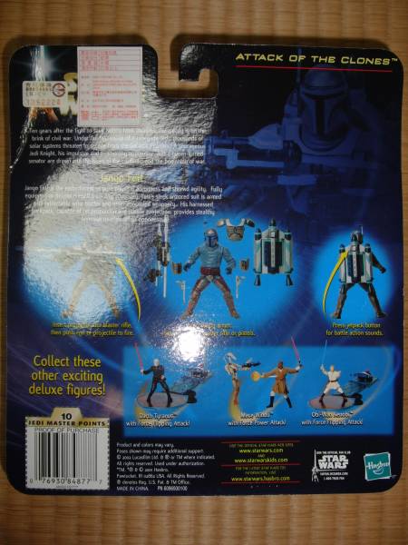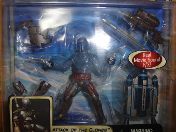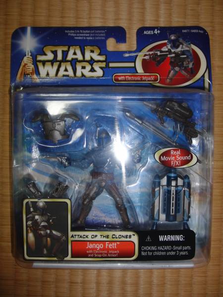 ジャンゴ・フェットのフィギュアです。ジェットパックのボタンを押すと、効果音が出ます。国内版のシールが張られていないので、輸入版と思われますが詳細はわかりません。新品未開封ですが購入してから年月が経っていますので中古扱いでお願いします。何か質問があれば、お気軽にどうぞ。ノークレーム、ノーリターンでお願いします。発送は定形外を予定しています。