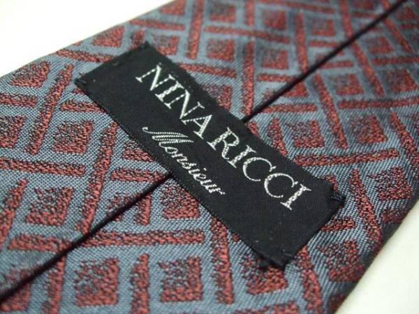 (^_^)良品/ニナリッチ/ネクタイ/NINA RICCI/赤茶色/シルバー/⑧