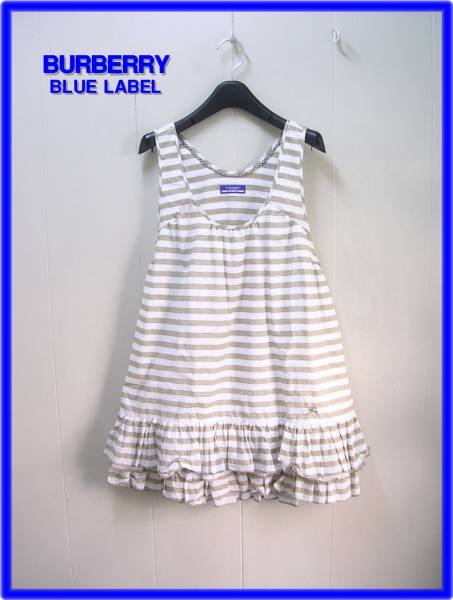 38【BURBERRY LONDON BLUE LABEL バーバリー ブルーレーベル ボーダー ワンピース】