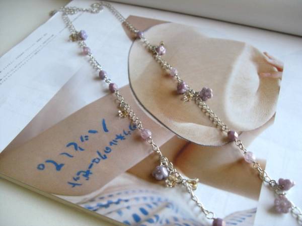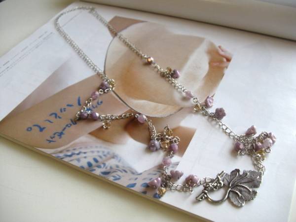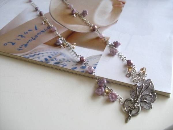 ビター・ガール・・シリーズです♪紫陽花のアート・・繊細な紫陽花色のネックレスです♪アンティークビーズやチェコのお花を集めて可憐な表情です♪6ミリ、7ミリ位のアンティークビーズにチェコのお花や3.5センチ位の葉っぱのトグルを合わせました♪長さは全長85センチ位です♪トップのトグルの位置を変えられても雰囲気が変わって素敵です♪お揃いのブレスレットやリングも出品しています♪シンプルで飽きのこないいつまでも着けられるデザインを考えて作りました!ハンドメイドをご理解頂いてノークレーム、ノーリターンでお願いします