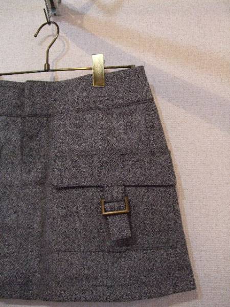 商品紹介 | ポケットのゴールドの金具がデザインのポイントになったスカートです。 タイトミニで、色は黒と白が混ざったミックスグレーです。 《素材》 表地:毛69% ポリエステル20% ナイロン5% アクリル5% ポリウレタン1% 裏地:ポリエステル100% |