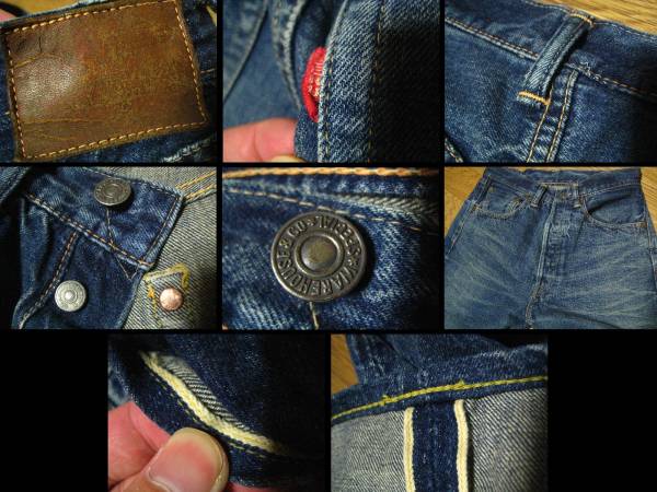。○●サイズ表記●○。 W?L? ボタンフライ 。○●平置きで実寸サイズ●○。 ウエスト約72㎝、レングス約67.5㎝、裾幅約19.5㎝ 太もも幅約28.5cm、股上前約29.5㎝、総丈約95㎝ ●WAER HOUSE Lot 不明 XXヴィンテージタイプになります。 ●程よい色感になります。 ●革パッチ・赤タブ・隠しリベット・ウエストバンドとバックポケットの縁はシングルステッチ・Vステッチ・ヴィンテージオフセット・各セルビッジ・裾はチェーンステッチなどなど。 ●濃紺極上の風格、しっかりとしたメリハリ感、ヒゲ・アタリ・タテ落ち感もこれから楽しめる1本になります。 ●実にカッコいいパンツになっております。激安で出品いたしますのでぜひこの機会にどうですか!!!