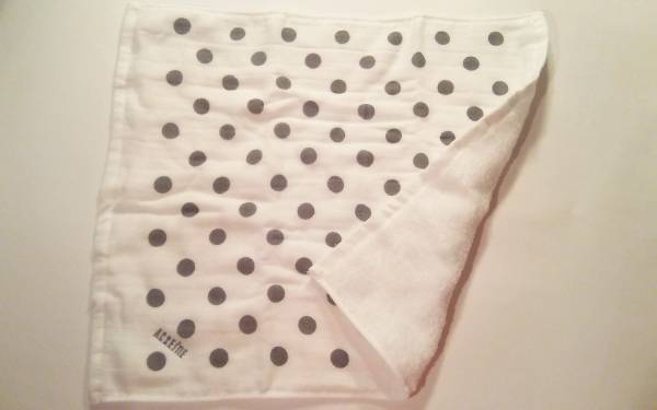 ハンカチの大きさは 高さ35cm  x  底直径31cm  で素材はガーゼとタオル地のコンビです。