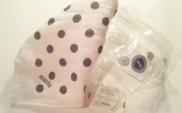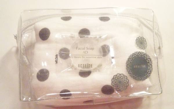 ハンカチ 可愛い水玉とミニ洗顔ソープのポーチいり。