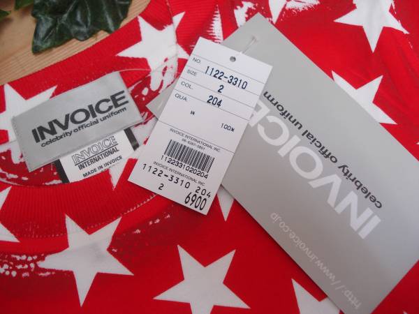 未使用【INVOICE】☆星柄 半袖Tシャツ レッド 2 定価6,900円