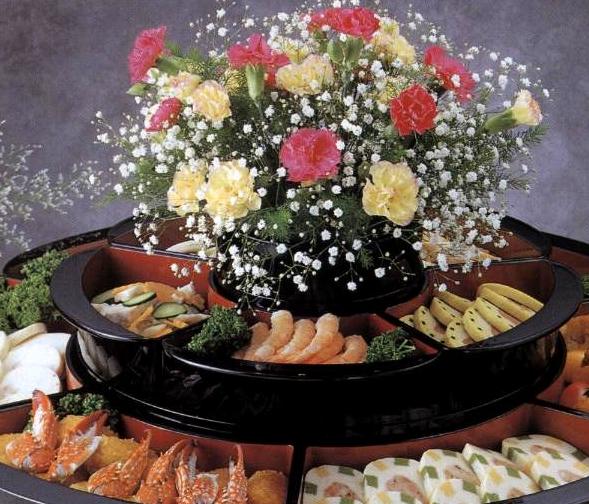 即落札★回転オードブル皿★花・朱渕黒22★パーティ用品