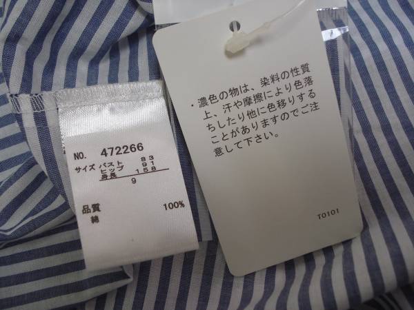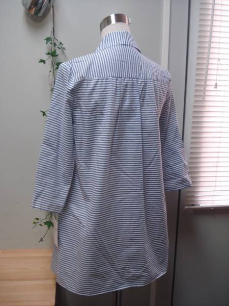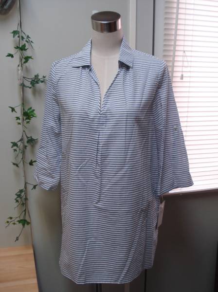 新品未使用◆プルオーバーボーダー柄 ロングブラウスブルー 9号