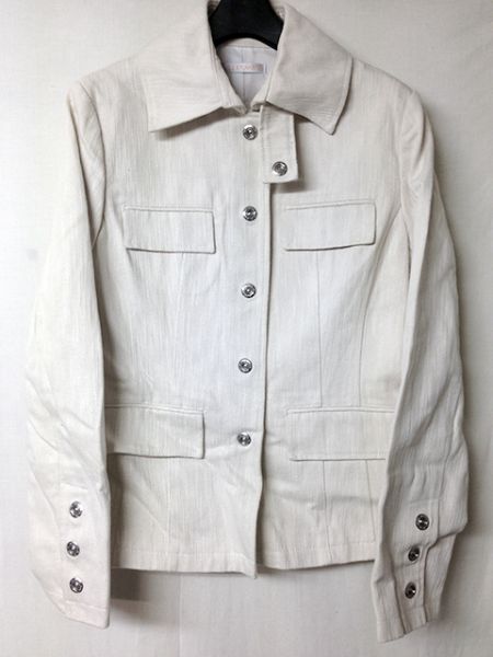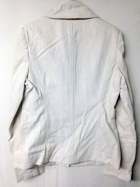 ELLE PLANETE コットンジャケットです。色は生成り。デニムのような硬めのコットン素材です。中綿入りではなくすっきり着れます。◆表地 コットン100% 裏地 ポリエステル100%◆サイズは38で着丈約57.5cm・肩幅約36.5cm・袖丈約58.5cm・身幅約41cmです。◆USEDですが状態は良好です。◆