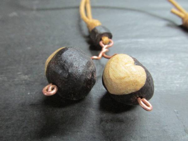 ローズウッド(本紫檀)と栓の木を使ってハートマークが印象的な風船かづらの種を丁寧に彫り出して二粒連ねてオリジナルなペンダントをデザインしてみました。