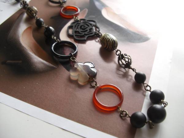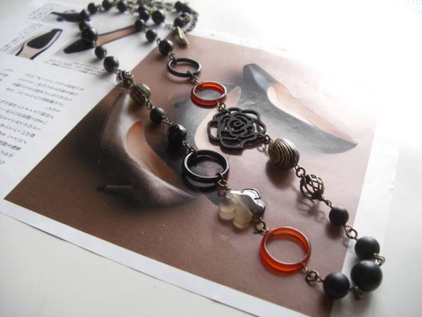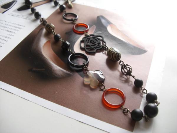 可愛らしさの定義・・シリーズです♪オニキスに恋して・・シックなオニキスのネックレスです♪丸玉やランダムカットやリングやマットオニキスなど色々な表情のオニキスにモスアゲートのフラワーやカーネリアンのリングや樹脂ビーズや透かしチャームやウッドの薔薇を合わせて大人のロマンチックしています♪オニキスは8ミリから20ミリ位までモ スアゲートのお花は20ミリ位、ウッドの薔薇は30ミリ位です♪長さは全長107センチ位で調節自由です♪2連にされても素敵です♪お揃いのブレスレットも出品しています♪♪シンプルでいつまでも着けられるデザインを考えて作りました!ハンドメ イドをご理解頂いてノークレーム、ノーリターンでお願いします