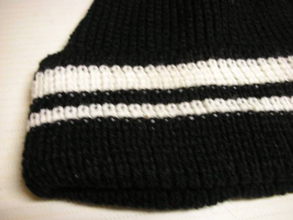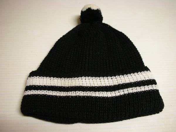ジャンク市★男女兼用ブラック地ホワイトボーダーニットキャップ