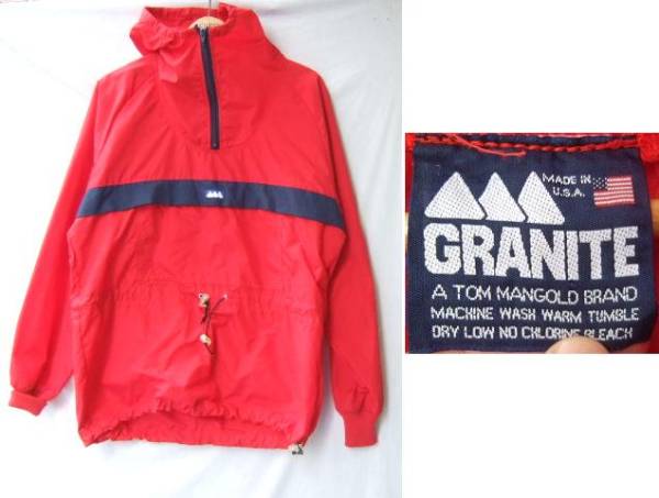 ●USA製GRANITEナイロンアノラックパーカ/アウトドアサイズS赤色 ジャケット アメリカ