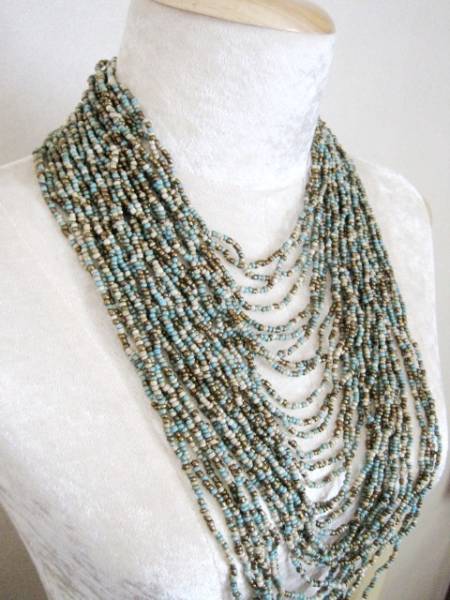 豪華32連 パープル ターコイズビーズネックレス 新作新品