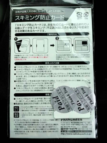 スキミング防止カードは、非接触式ICカードに書き込まれている個人データーをスキミング(不正読み出し)されるリスクを低減させる効果のあるカードどすぅ~。
