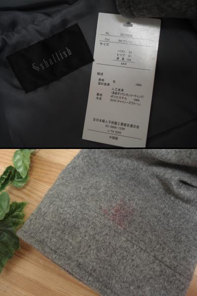 未使用訳あり◆shallish◆ラクーンファー ウールコート グレー9/d156