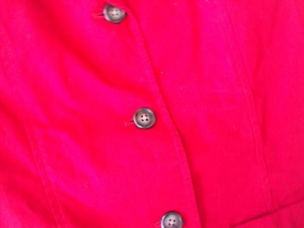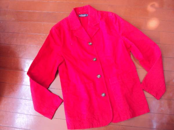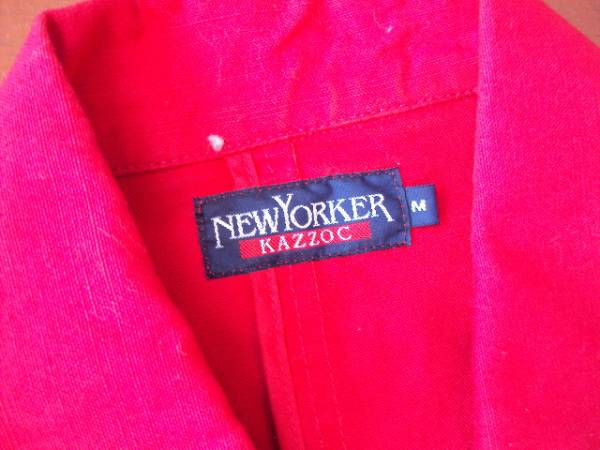 NEW YORKERニューヨーカーのジャケットです。お色はレッド系です。サイズはMです。素材は綿100%です。平置きサイズ、着丈62cm、脇下身幅44.5cm、肩幅37cm、袖丈58cm位です。使用品ですので神経質な方は御遠慮下さいね。ノークレームノーリターンでお願いいたします。その他いろいろ出品していますので見て下さいね。必ず自己紹介も御覧下さいね。