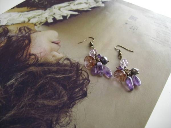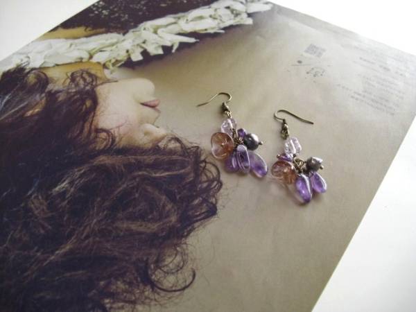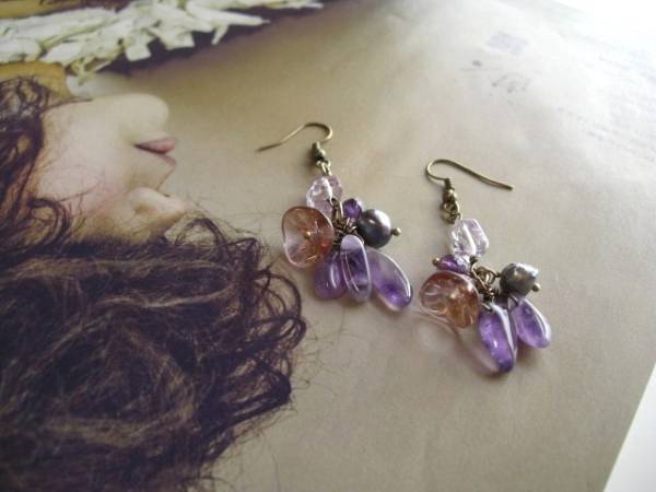 モードな秋色・・シリーズです♪茨姫の冠・・シックな紫色のアメジストと淡水パールのピアスです♪深い紫や淡いパープルのアメジストは6ミリから13ミリ位までのラフカットや縦長のタンブルなどデザイン違いです♪パープルグレーのバロックの淡水パールやチェコのお花を合わせてロマンチックな表情です♪長さは全長6センチ位です♪イヤリングにも変更出来ます♪お揃いのネックレスやブレスレットも出品しています♪ハンドメイドをご理解頂いてノークレーム、ノーリターンでお願いします