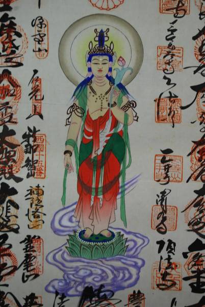 西国 三十三ヶ所/西国三十三箇所霊場集印肉筆掛軸//掛軸☆宝船☆D-A72 J