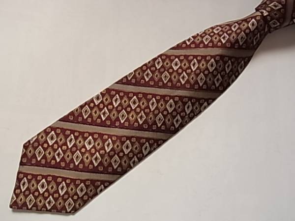 新品同様ギラロッシュGuy Larocheネクタイ(ストライプ柄幾何学柄小豆色 茶色 金色系 番号s-114