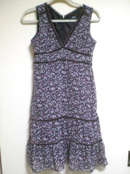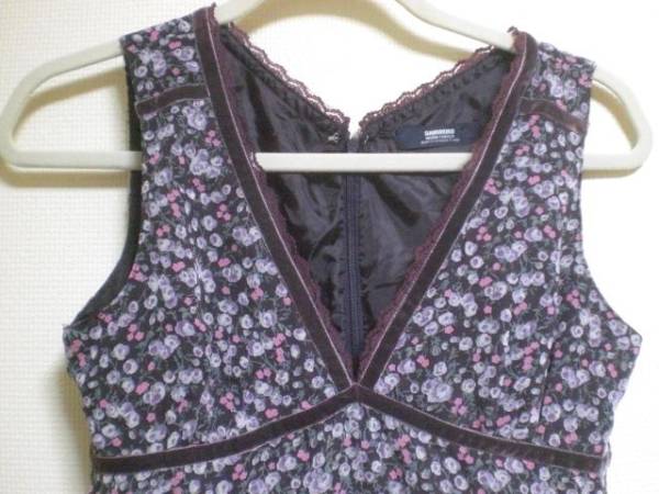 F)SABUROKU レース、ベロアテープワンピース/M