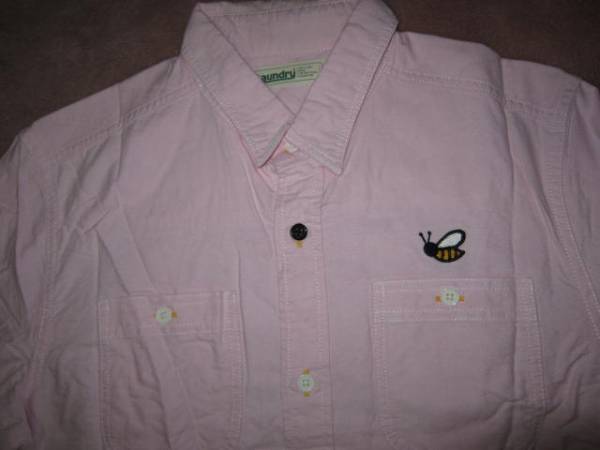 Laundry ランドリー ハチ刺繍 7分袖 オックスフォードシャツ ピンク M