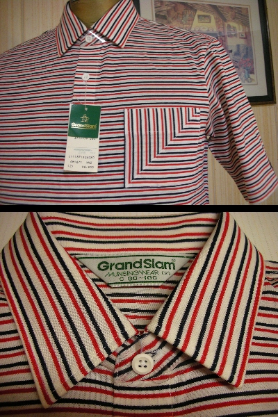 ジャンク市★70’レトロMUNSINGボーダー柄 半袖ニットシャツ-L