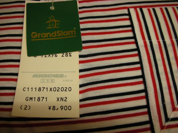 カジュアル感溢れるシャツカラーの70’S レトロ柄 横ボーダー柄半袖ニットシャツ白地横ボーダーレッド とブラック色上品カラーのニットシャツ。左袖MUNSINGワンポイント付 です。 1970年代産のエレガント 半袖ニットシャツ です。素材は 伸縮するニット地 天竺織で着心地良い 綿 72% ポリエステル 28% です。サイズ(実測平置採寸)は 肩幅 41cm 後着丈 68,5cm 身幅(脇下) 49,5cm 身幅(胴回) 49,5cm 半袖丈(上肩先より) 25cm トップ衿 6cm  です。表示サイズは 2 C90~100 (Lの大きさ) の表示です。MUNSING ブランドです。こちらは、こだわりの優れた縫製の日本製品です。勿論 新品です。ただ 在庫レトロ品ですので ジャンク扱い商品です。普段着 作業衣 等としても ご活用下さい。それ故 超安値の超安値の処分価格スタートとなります。よって お買い得となっております。店頭販売価格 8,900円 です。 どこか違う個性派  ピュアレトロファッションをお楽しみ下さい。