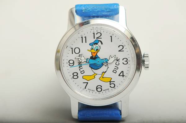 ●74年にBARDLEYから発売された、ドナルドダック手巻き腕時計です。