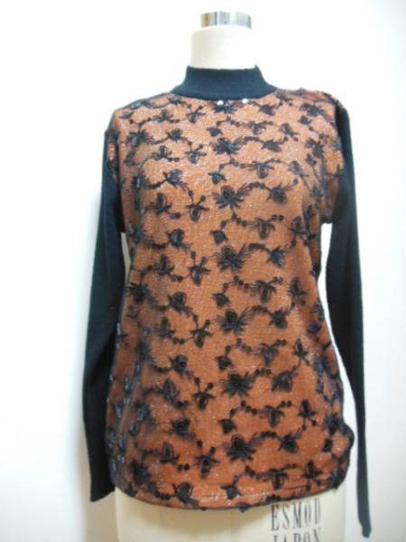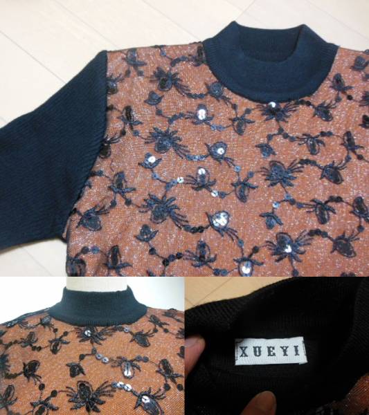 その上に、花柄のような黒の刺繍とスパンコールのデザインがあります。