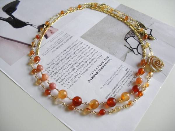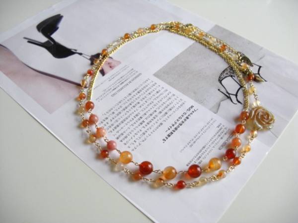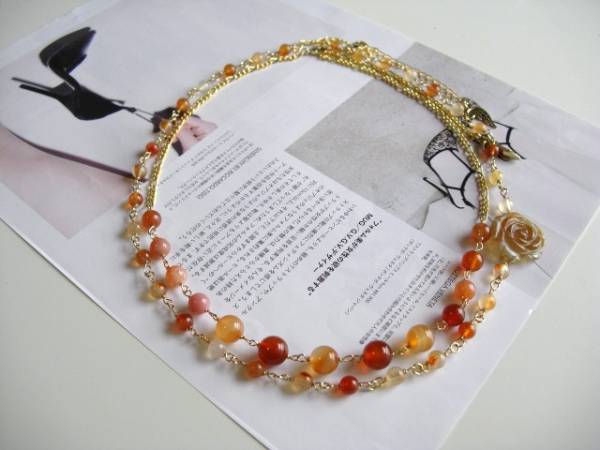 ずっとお気に入り・・シリーズです♪やさしい色を重ねて・・シックなカーネリアンのネックレス2点セットです♪大きさ違いの丸玉や薔薇のカーネリアンがアンティークな表情です♪シンプルなデザインなので単品でも重ねてもブレスレットにしても楽しんでいただけます♪6ミリの丸玉のカーネリアンには25ミリ位の薔薇のカーネリアンを合わせました♪長さは全長73センチ位で調節自由です♪8ミリ、10ミリの丸玉のカーネリアンはデザインチェーンを合わせました♪長さは全長60センチ位で調節自由です♪単品やお揃いのブレスレット、ピアスとのセットも出品しています♪シンプルで飽きのこないいつまでも着けられるデザインを考えて作りました!ハンドメイドをご理解頂いてノークレーム、ノーリターンでお願いします