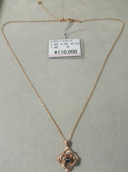 K18PGのブラックダイヤ&ダイヤ ネックレスです。