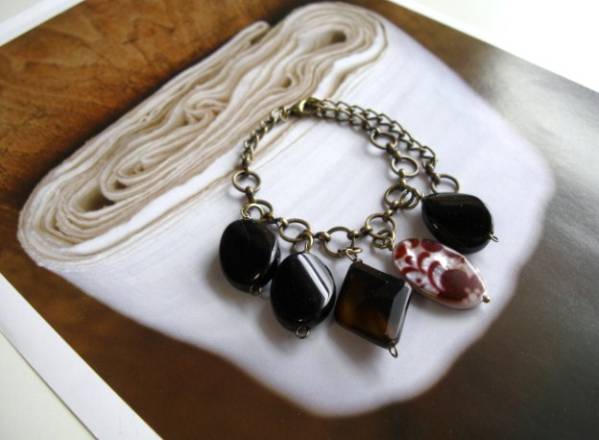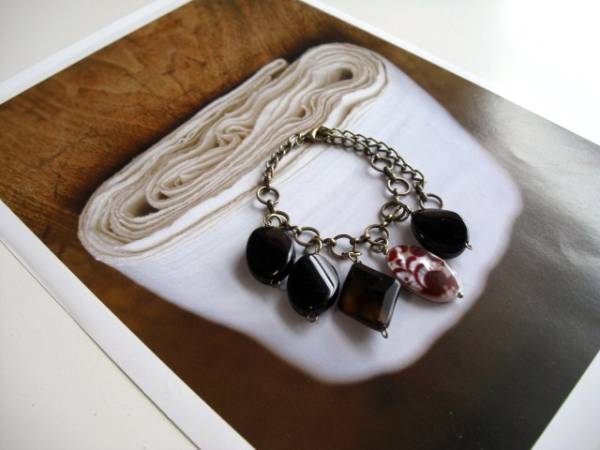 初夏の物語・・シリーズです♪オニキス・セレクト・・シックな黒のオニキスのブレスレットです♪オーバルツイストやダイヤカットのオニキスやブラウンオニキスに花柄のシェルやデザインチェーンを合わせてキュートな表情です♪オニキスは18ミリから22ミリ位までシェルは25ミリ位です♪長さは全長23センチ位で調節自由です♪お揃いのネックレスも出品しています♪シンプルで飽きのこないいつまでも着けられるデザインを考えて作りました!ハンドメイドをご理解頂いてノークレーム、ノーリターンでお願いします