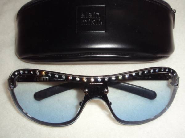 alain mikli,フランスの有名眼鏡ブランドです。外のフレームは、ブラック、レンズは,ブルーのカラーです。ラインストーンがレンズとフレームの間に埋め込まれていますので、なくなる事もございません。