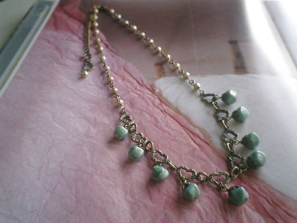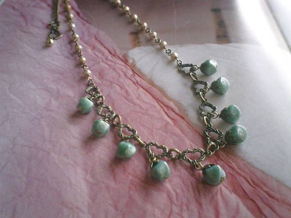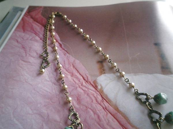ジゼルの季節・・シリーズです♪やさしい春に・・ベージュピンクの淡水パールとブルーグレーのアンティークビーズのネックレスです♪シックで可憐な表情です♪淡水パールは5ミリ位のポテト、座金でおめかししたアンティークビーズは8ミリ位です♪ハートのチェーンに合わせてキュートです♪♪長さは全長58センチ位で調節自由です♪♪お揃いのブレスレットやピアスも出品しています♪シンプルで飽きのこないいつまでも着けられるデザインを考えて作りました!ハンドメイドをご理解頂いてノークレーム、ノーリターンでお願いします