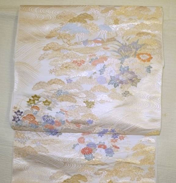 【☆九寸名古屋帯☆】☆絹100%☆未仕立 画像にてのご判断でご入札をお願い致します。ノークレームノーリターンでのご落札をお待ちいたします。