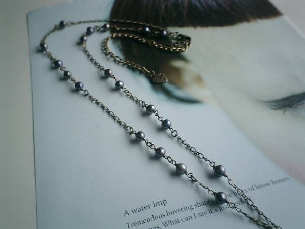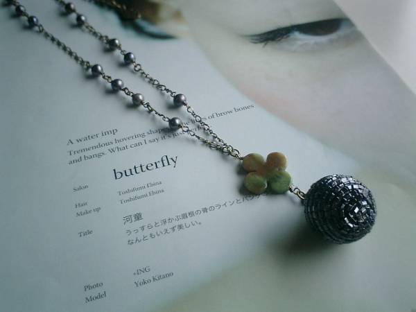 巴里・ロゼッタ・・シリーズです♪メタリックにキュートに・・シックな大人のネックレスを作りました♪パープルグレーの淡水パールとトップは四つ葉のグリーンオパールとメタリックなビーズ玉です♪さりげなく個性的な表情です♪淡水パールは6ミリ位のポテトでグリーンオパールは20ミリ位、ビーズ玉は20ミリ位です♪長さは全長84センチ位で調節自由です♪お揃いのブレスレットやイヤリングも出品しています♪飽きのこないいつまでも着けられるデザインを考えて作りました!ハンドメイドをご理解頂いてノークレーム、ノーリターンでお願いします