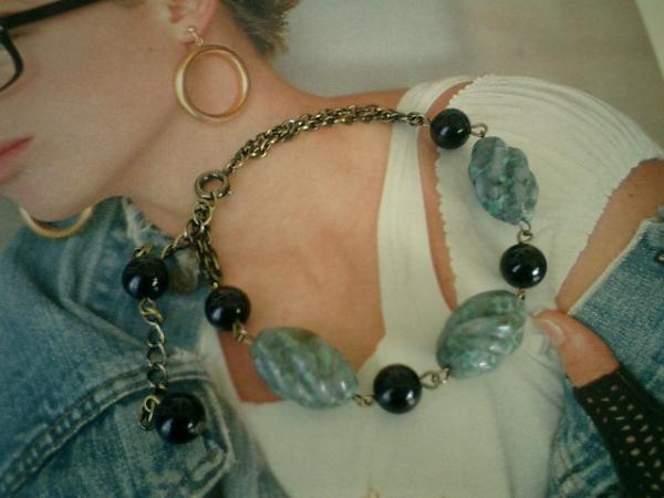 シックで大人っぽい雰囲気のターコイズのブレスレットを作りました♪大き目のターコイズと神秘的な黒のオニキスと組み合わせが個性的です!ターコイズは2×1センチの大き目の変形でオニキスは8ミリの丸玉です!シンプルで飽きのこないいつまでも着けられるデザインを考えて作りました!長さは18センチ+アジャスター7センチで最長25センチ位です。お揃いのネックレスも出品しています。ハンドメイドをご理解頂いてノークレーム、ノーリターンでお願いします --------------------------------------------------------------------------------