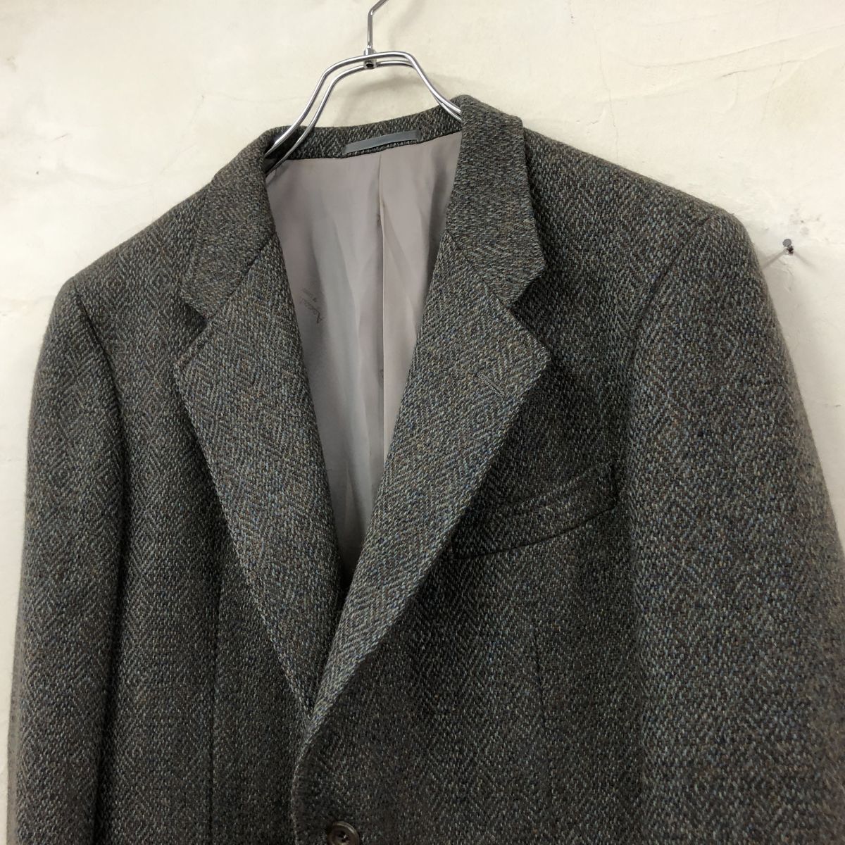 2O2338-D◆old◆ Aquascutum アクアスキュータム ツイードジャケット シングル 総裏 ◆ size96BE4 カーキ系 マルチ ウール 古着