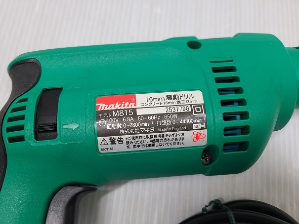 【中古品】 マキタ makita 16mm 震動ドリル M815 取扱説明書 収納ケース 付き ○YR-16897○