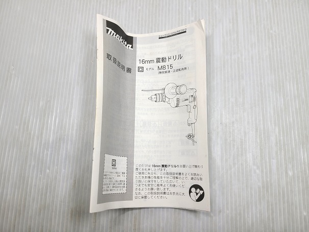 【中古品】 マキタ makita 16mm 震動ドリル M815 取扱説明書 収納ケース 付き ○YR-16897○ の出品です。