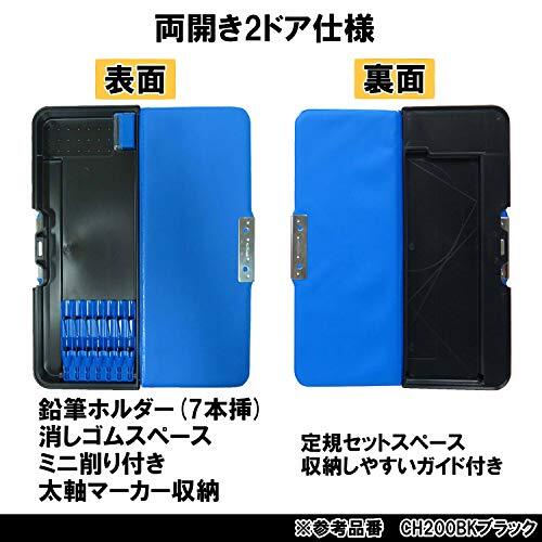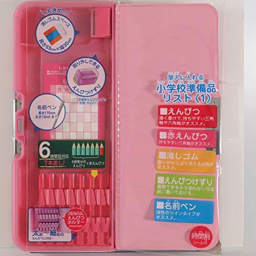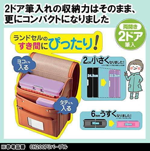 コンパクトでランドセルにピッタリな両開き2ドア筆入れです。 従来の筆入れより6mm薄くなり学校机の隙間に入りやすくなりました。(クツワ製2ドア筆入れと比較) 消しゴム、定規セット、太軸マーカー、鉛筆7本と授業に必要なものがすべて入ります。 鉛筆ホルダーは、スリット入りで様々なサイズに対応します。 小型鉛筆削りが付属。