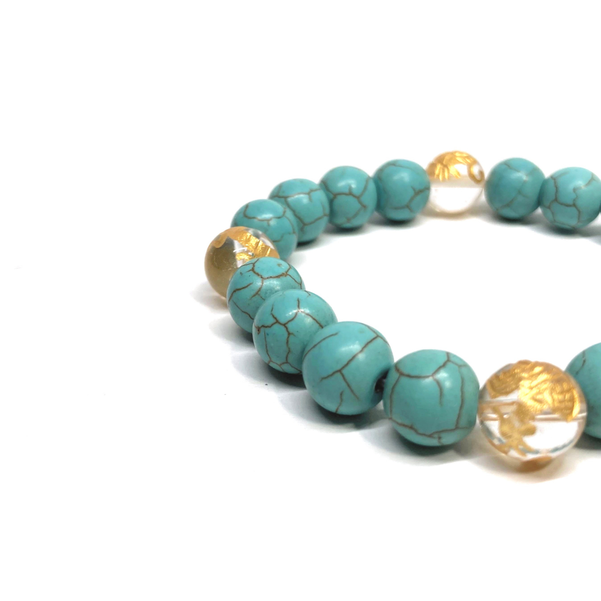 10mm 四神獣金彫水晶×ターコイズ パワーストーン ブレスレット天然石 運気上昇 開運 金運 恋愛運 青龍 白虎 玄武 朱雀 #2 ☆