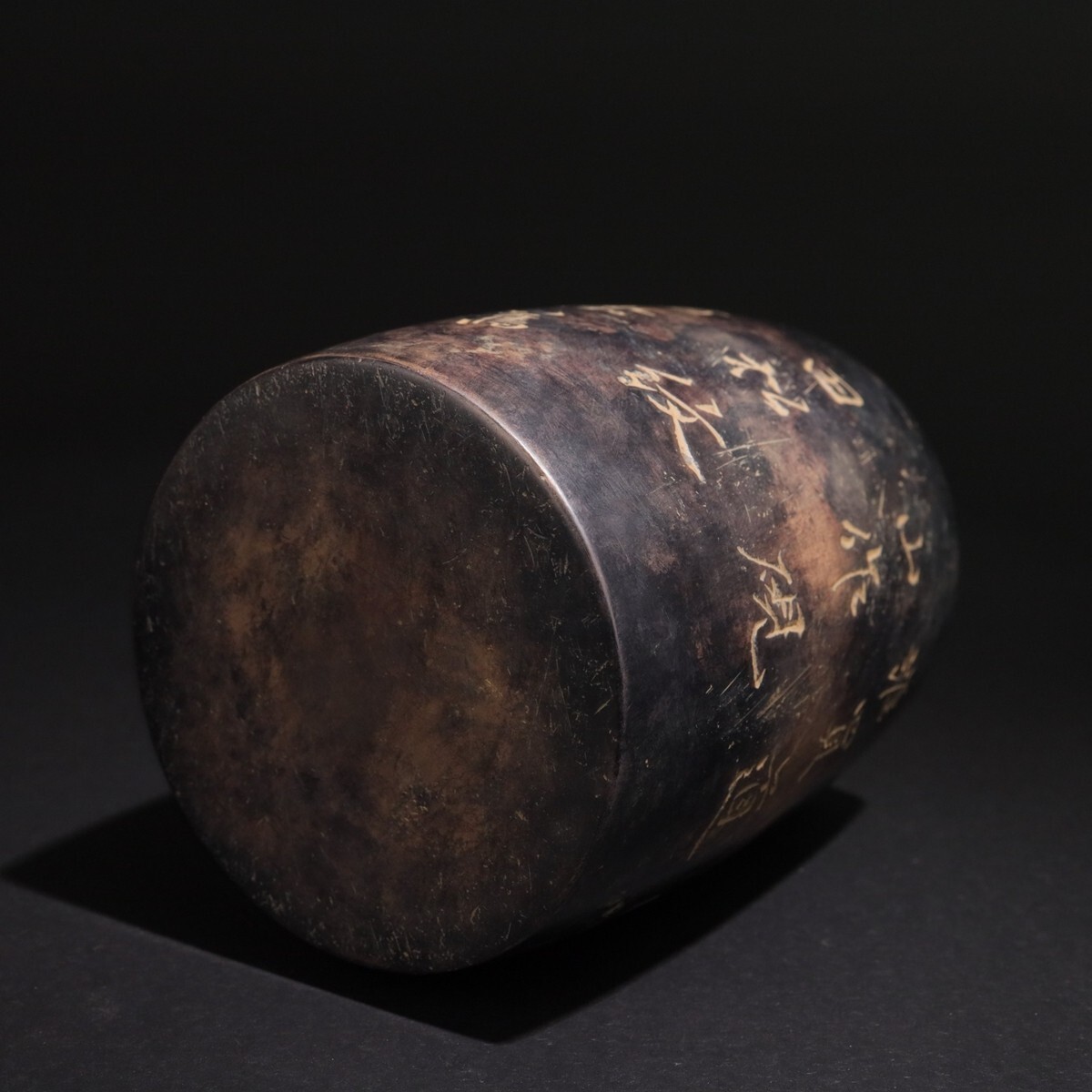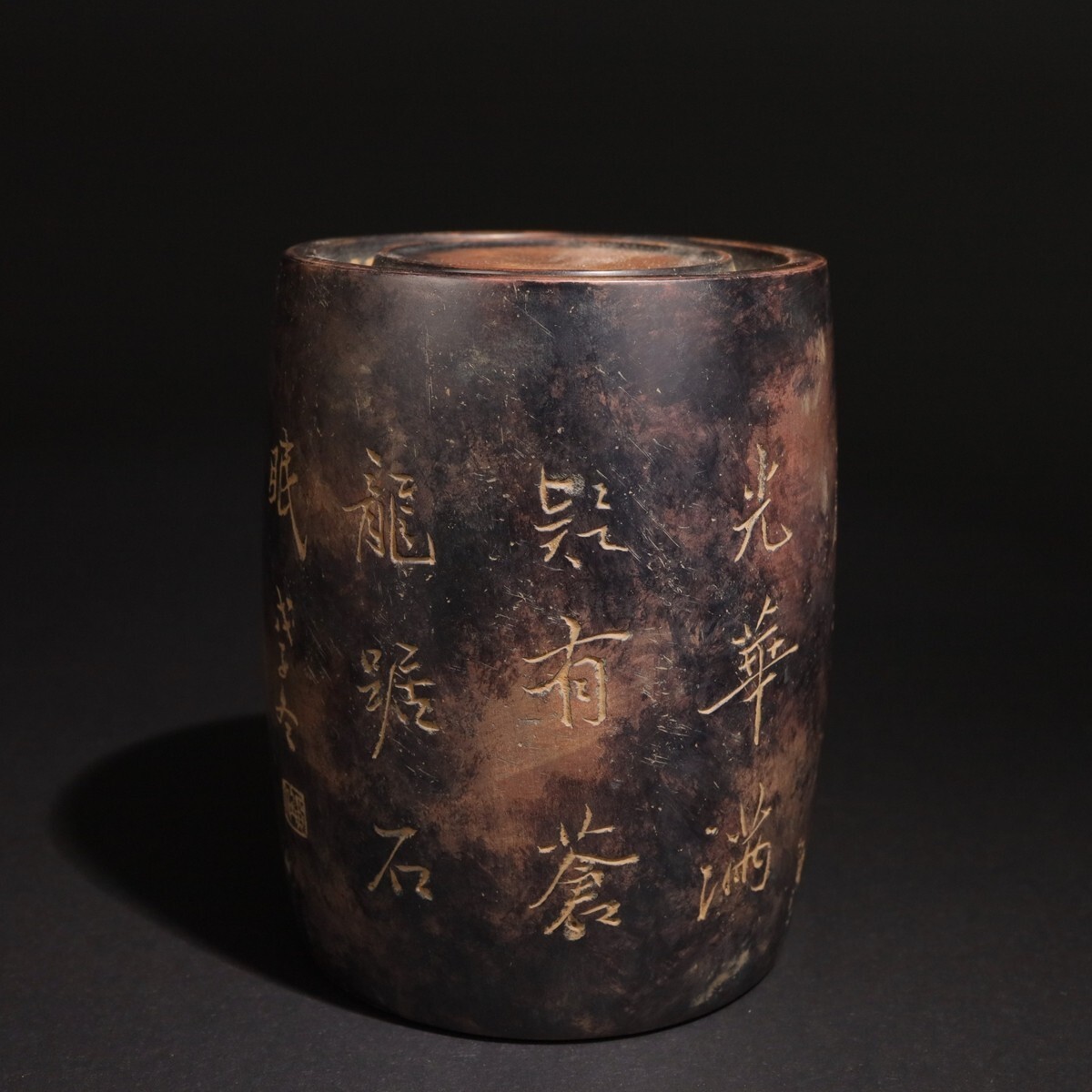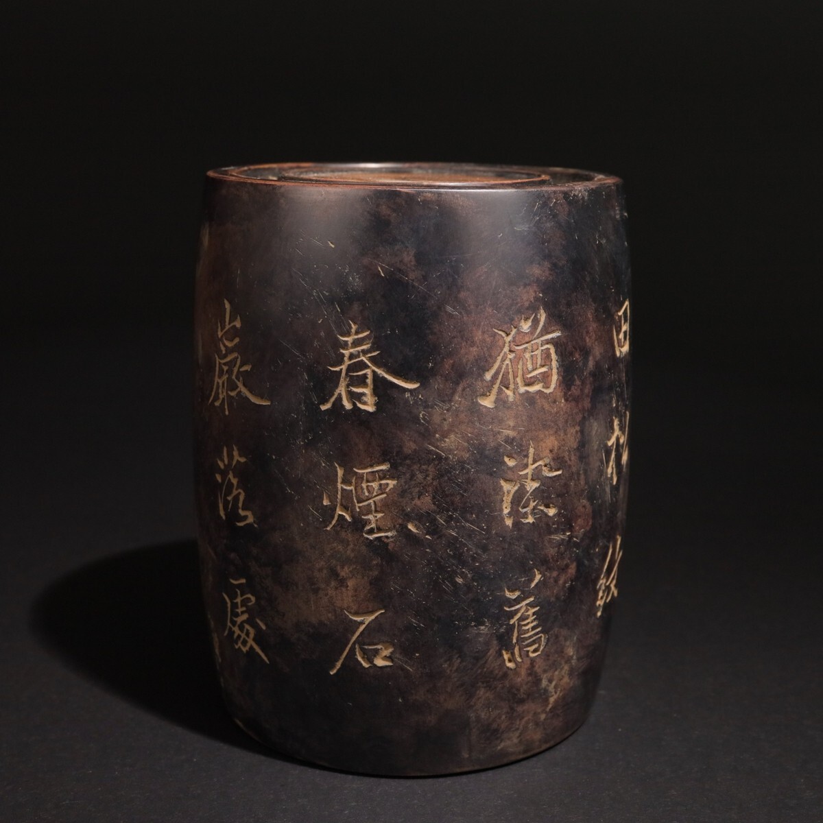 「古端石硯 鼓形文房端渓硯 黄任銘 清時代」手彫り 文房四宝 書道具 中国古美術 旧蔵出