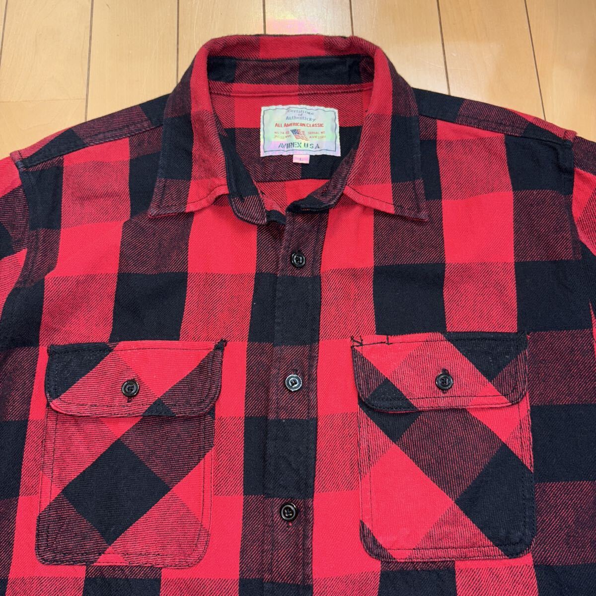 AVIREX アヴィレックス 赤黒 ブロックチェック バッファローチェック ネルシャツ アビレックス