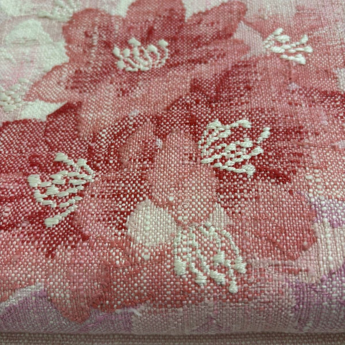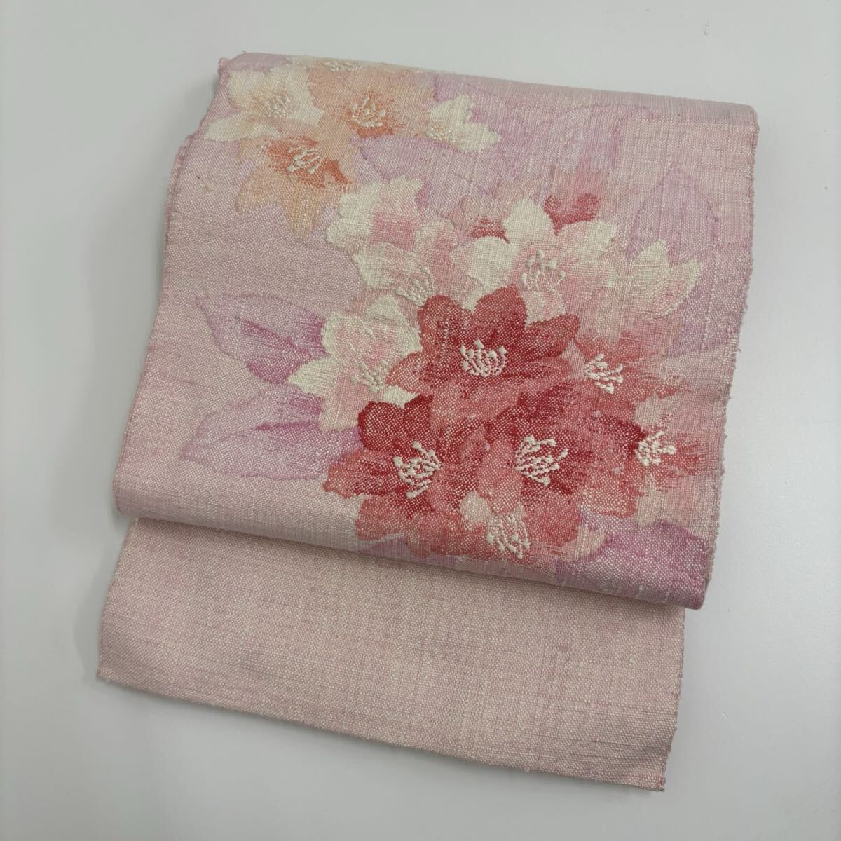 真綿紬 名古屋帯 正絹 素敵な花の織柄 八寸Q-227